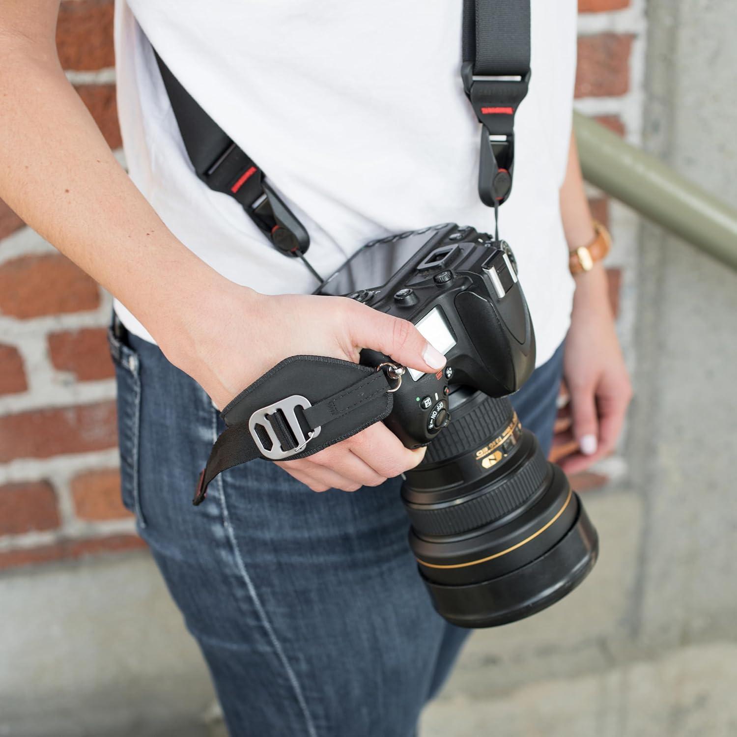 QUICK, EASY ADJUSTMENTS: This DSLR camera strap features quick-adjusting functionality, allowing you to cinch it down for total security or loosen it on the fly when you need more freedom to shoot, adjust, or review.