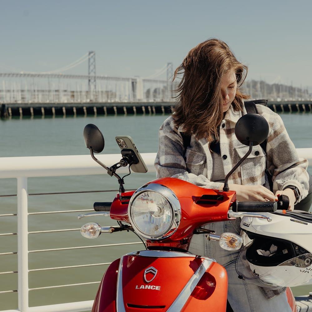 Securely and rigidly mount your phone on any mirror stem, navigation crossbar, or accessory rail Ideal for scooters with long mirror stems or larger bikes with accessory rails near the instrument cluster