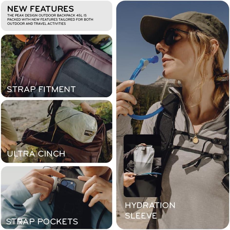 Peak Design Outdoor Backpack 45L, Cloud, Lightweight Internally-Framed Backpack, Ultra Cinch Roll-Top Design, Ideal for Hikes, Camera Carry and Travel, Versatile Backpack for Men and Women(Black)